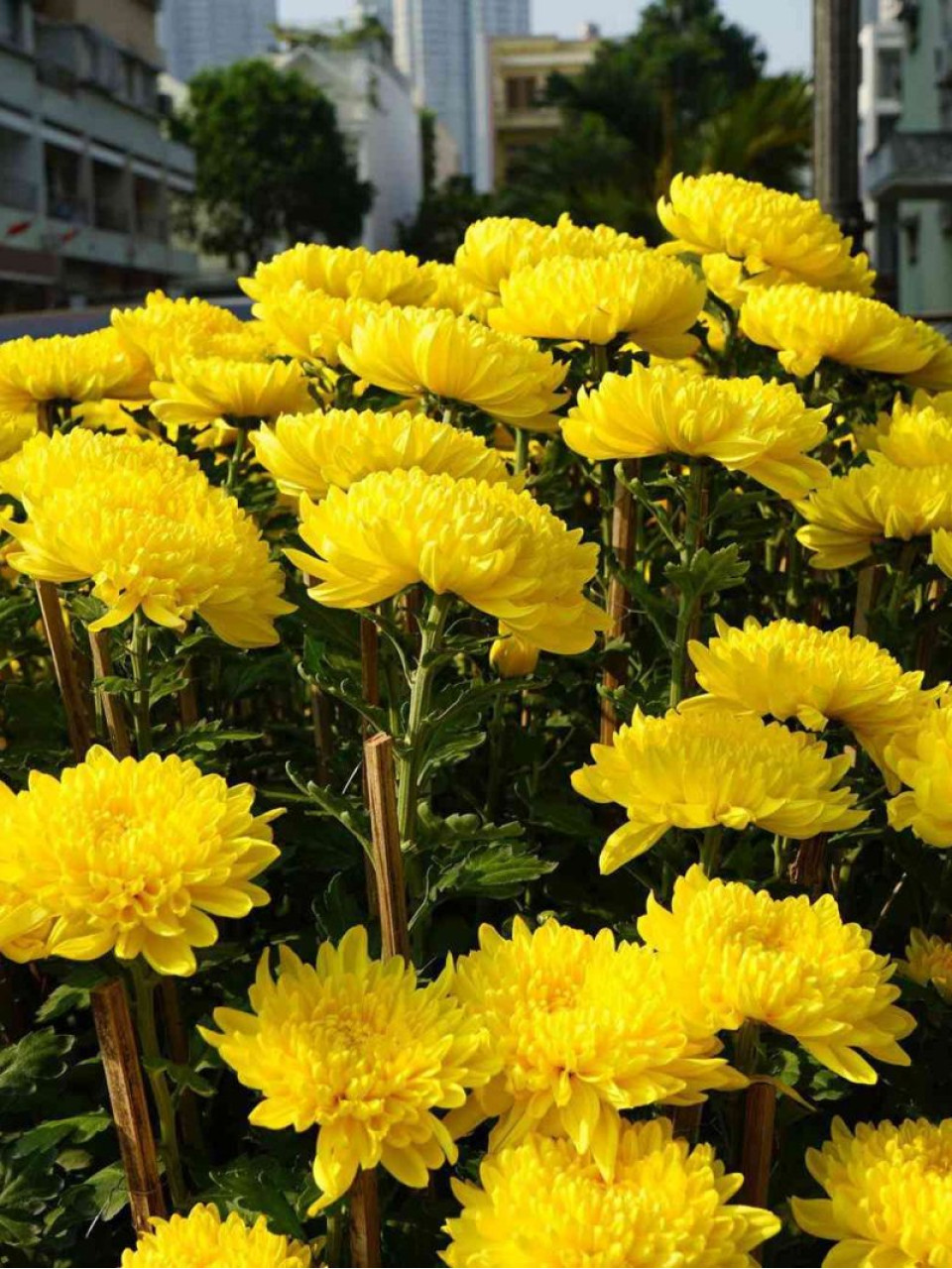 Khi cây cúc pha lê đã đạt được chiều cao khoảng từ 30cm trở đi chúng ta sẽ tiến hành cắm cọc, làm giàn để có thể giữ cho cây cúc của mình mọc thẳng đứng mà không dễ bị nghiêng, đổ. Khi cây bắt đầu lớn dần thì sử dụng lưới nâng dần theo chiều cao.